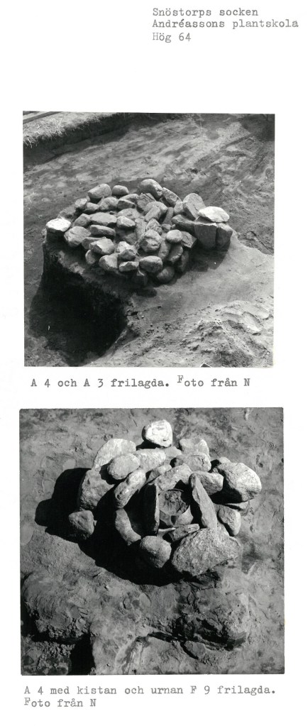 År 1966 grävdes den så kallade ”Hög 64” ut i Snöstorp. Det ganska oromantiska namnet härstammar från 1920-talet när fornlämningarna i Snöstorps socken inventerades och numrerades.