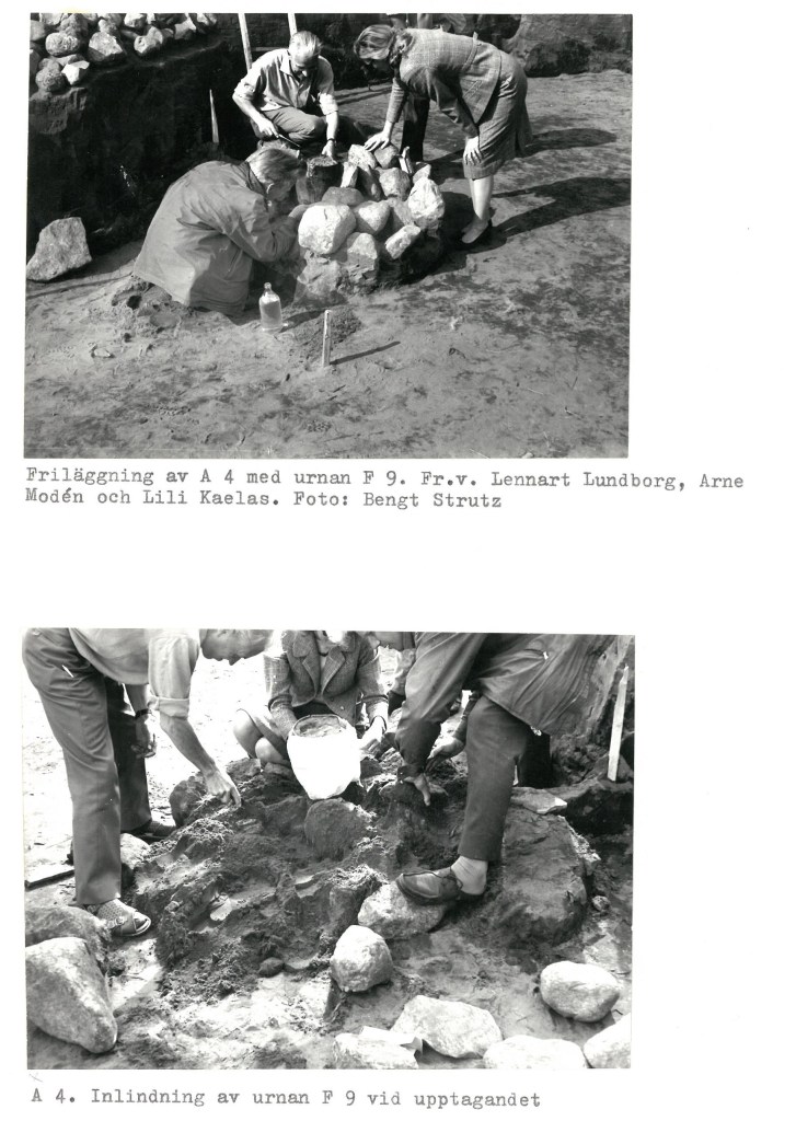 I Grav A 4 fanns även benfragment av får, och en fragmentarisk järnkniv. Det är ett mycket ovanligt föremål att hitta i en grav från yngre bronsåldern (ett järnföremål ett par hundra år innan järnålders början!) och man kan anta att den har importerats. Kanske har fåret placerades i graven som ”mat på resan”, och den exklusiva kniven kan ha givits som gravgåva för att ge ett symboliskt skydd åt de döda.