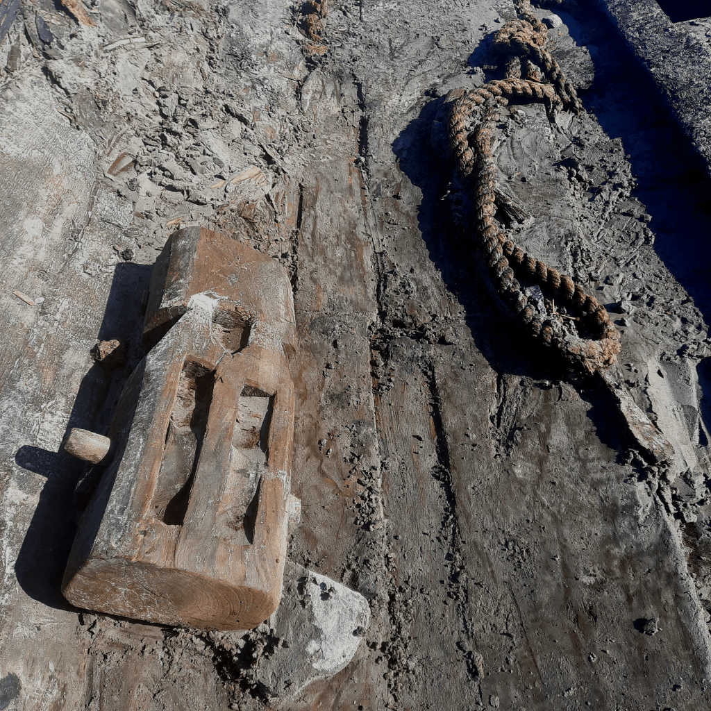 Barlasten i kogg 1 är här snart helt avlägsnad. Under den hittades bland annat välbevarade delar till skeppets rigg.